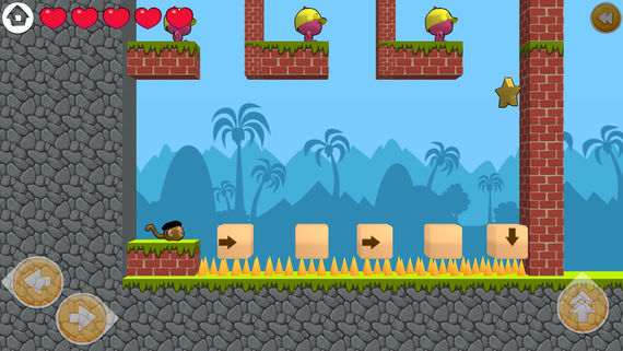 Como podemos observar en las imágenes, el objetivo es que el monito consiga las gemas y al final de cada misión obtenga la estrella. Estas misiones son diferentes a las anteriores, porque manejamos nosotros al mono, moviendolo hacia delante o saltando. Además, a medida que vamos avanzando podemos coger vidas, para así poder resolver con éxito las misiones.
